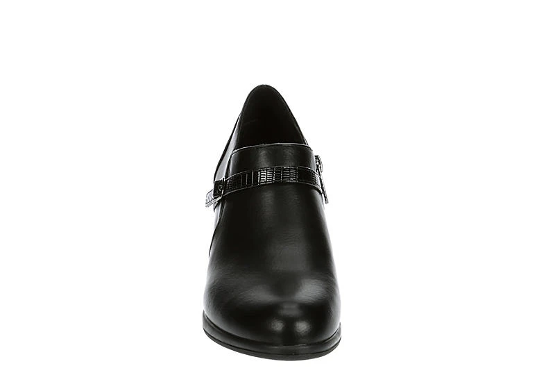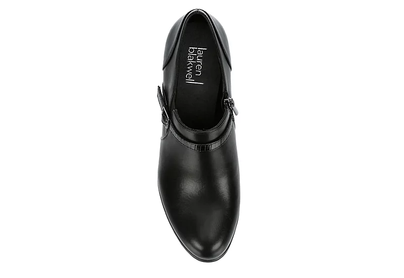 Get ready with your casual fall style in the Ellory women’s bootie from Lauren Blakwell. Featuring a faux leather upper with a decorative snakeskin print buckle strap, this inside zip ankle boot looks great with dark jeans and a light trench. The cushioned footbed comforts your foot while the 2″ block heel offers stable lift.